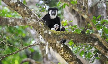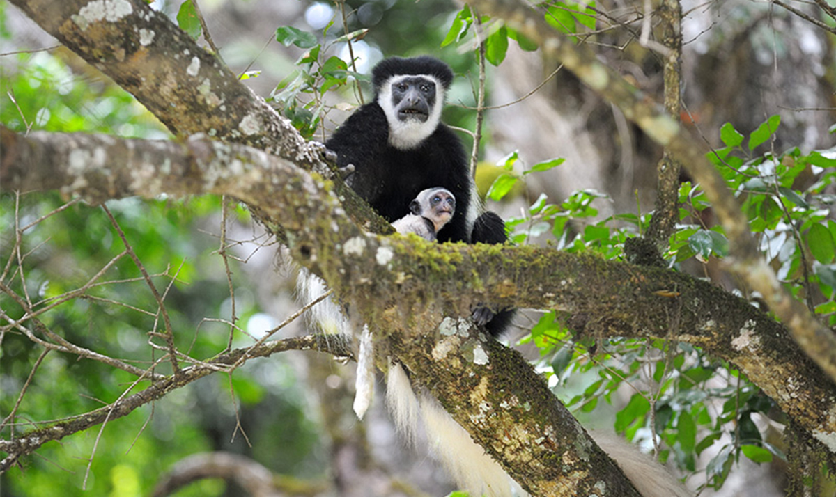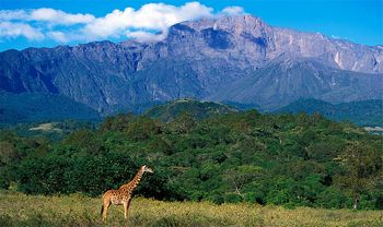 Located just 40kms from Moshi, this is one of the most beautiful parks in Tanzania. It is remarkable for its range of different habitats….a miniature volcanic crater, highland rainforest, acacia woodlands, and a string of crater lakes (Momella Lakes). Its three most spectacular features are these Momella Lakes, Meru Crater, and Ngurudoto Crater. In addition, on a clear day, this park offers spectacular views of both Mt. Meru and Mt. Kilimanjaro. Due to its close proximity to Moshi and Ameg Lodge, this park can be visited as a day excursion or an overnight stay. A wide variety of wildlife can be spotted here…various antelopes, buffalo, hyena, leopard, baboon, giraffe, elephant, hippo, and a wealth of bird life. The black and white colobus monkey is a favourite and is easily spotted here.